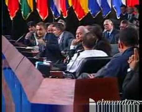 Incidente entre Chávez y el Rey de España, don Juan Carlos I, durante el discurso en que Zapatero llama la atención a Chávez sobre la falta de respeto que suponen los insultos de Chávez al ex-presidente español Aznar.